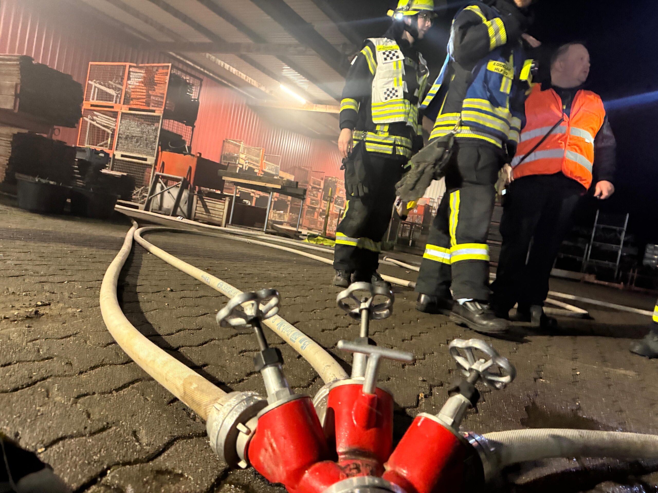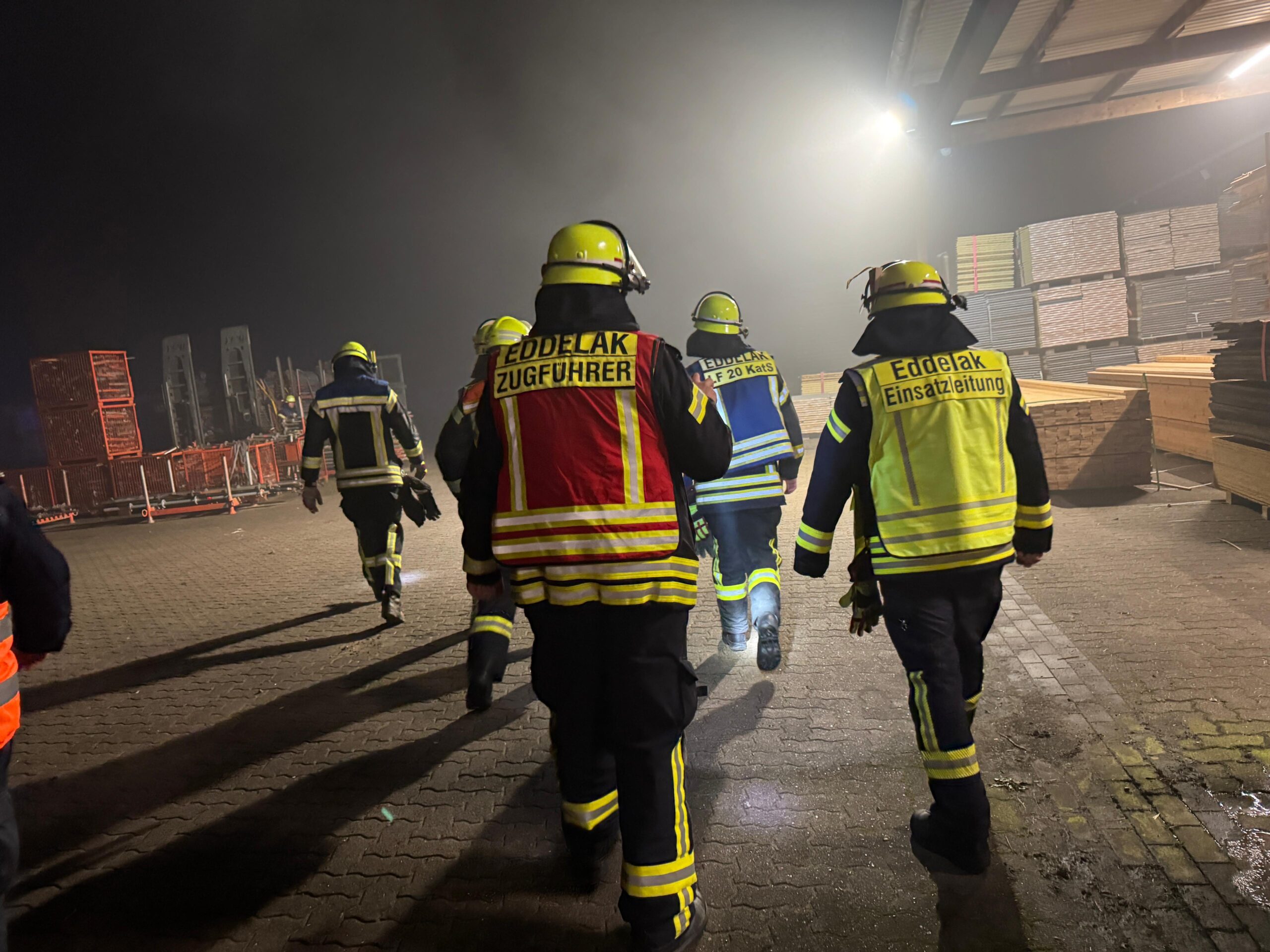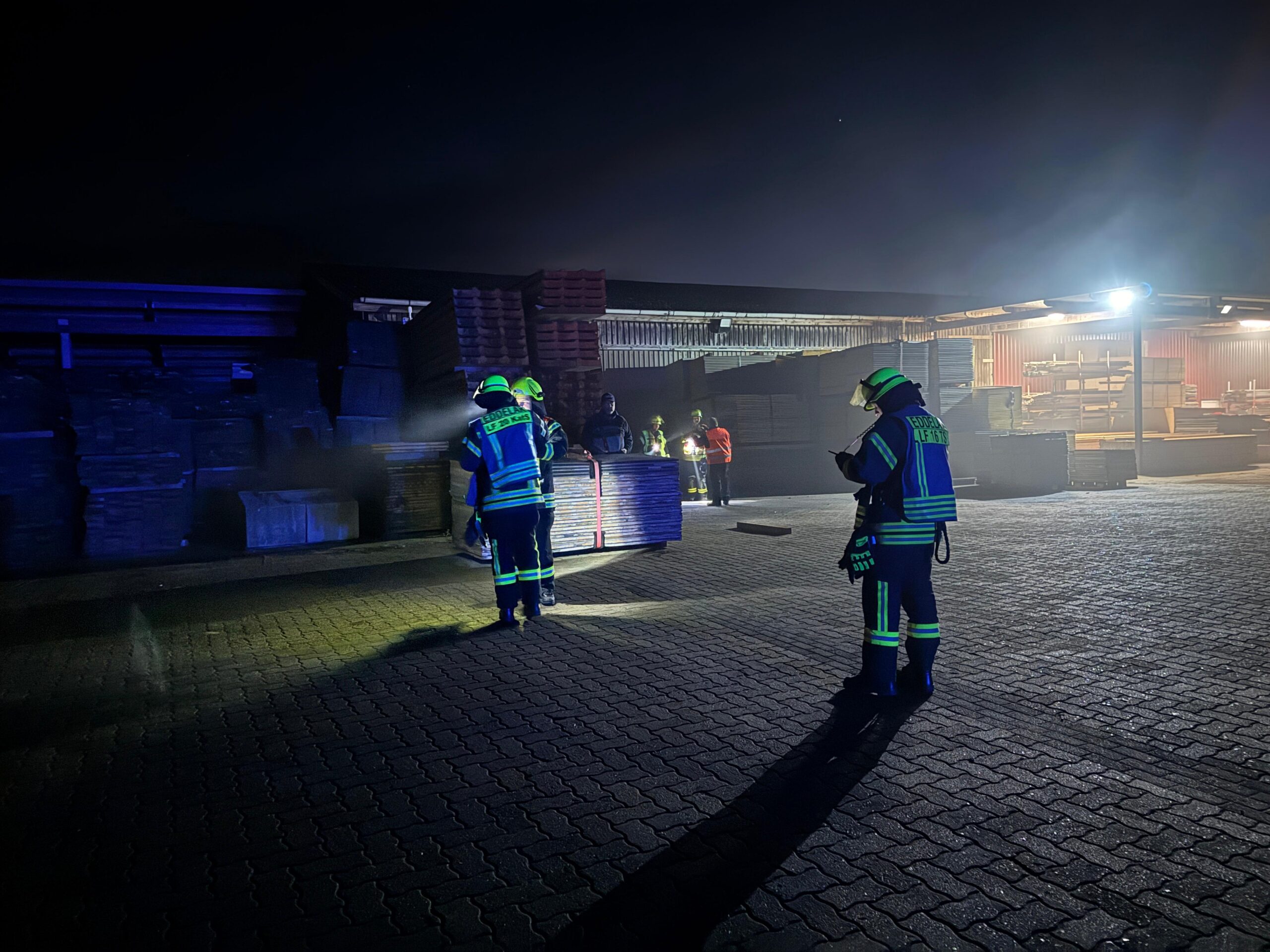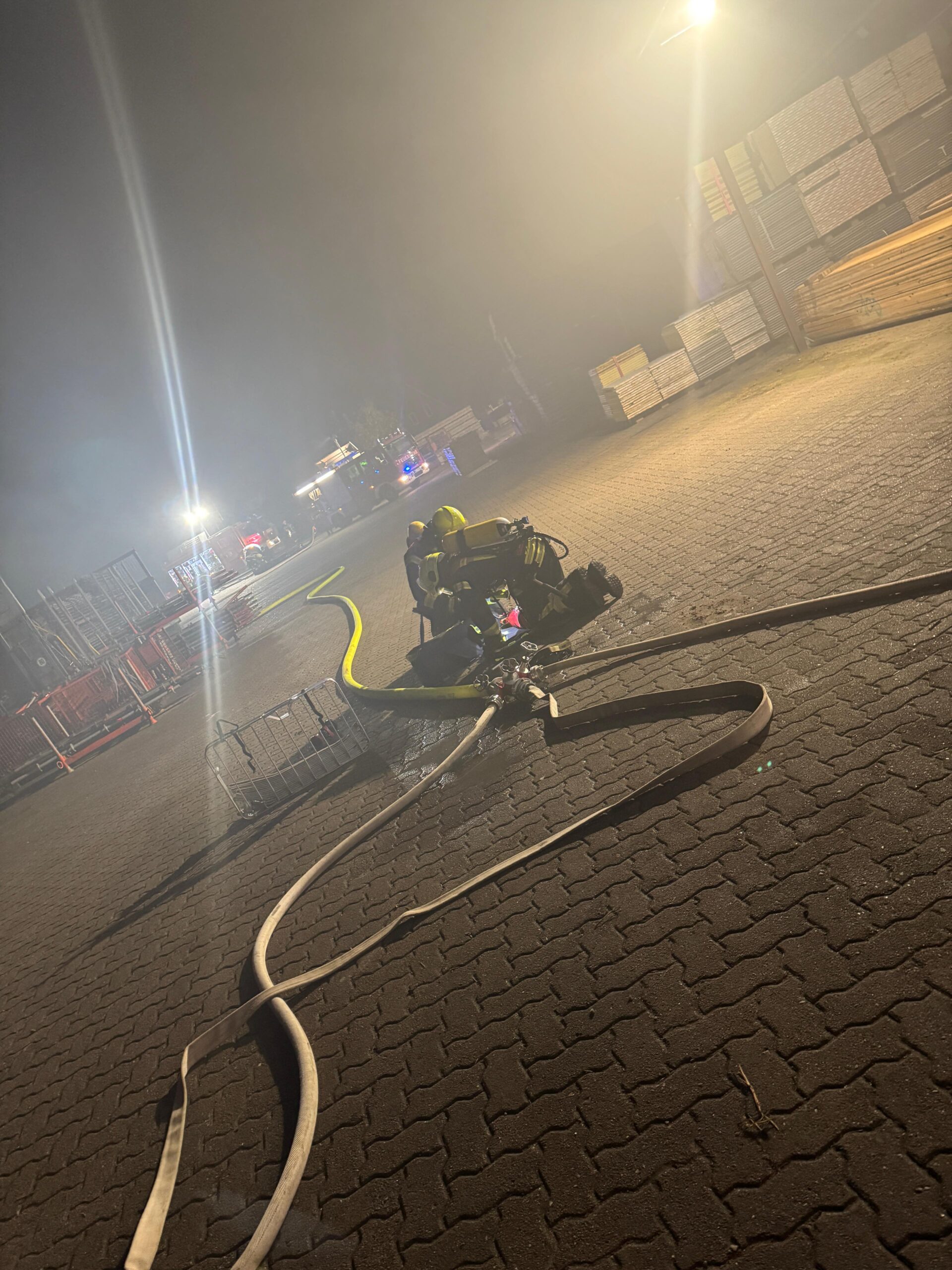 Mittwochabend, 19:30 Uhr – eigentlich stand der reguläre Zugdienst unserer Wehr auf dem Plan. Doch kaum hatte die Einweisung begonnen, ertönten plötzlich Sirene und Meldeempfänger. Die Einsatzkräfte rückten umgehend in die Bahnhofstraße zum Firmengelände von K&N Gerüstbau aus.