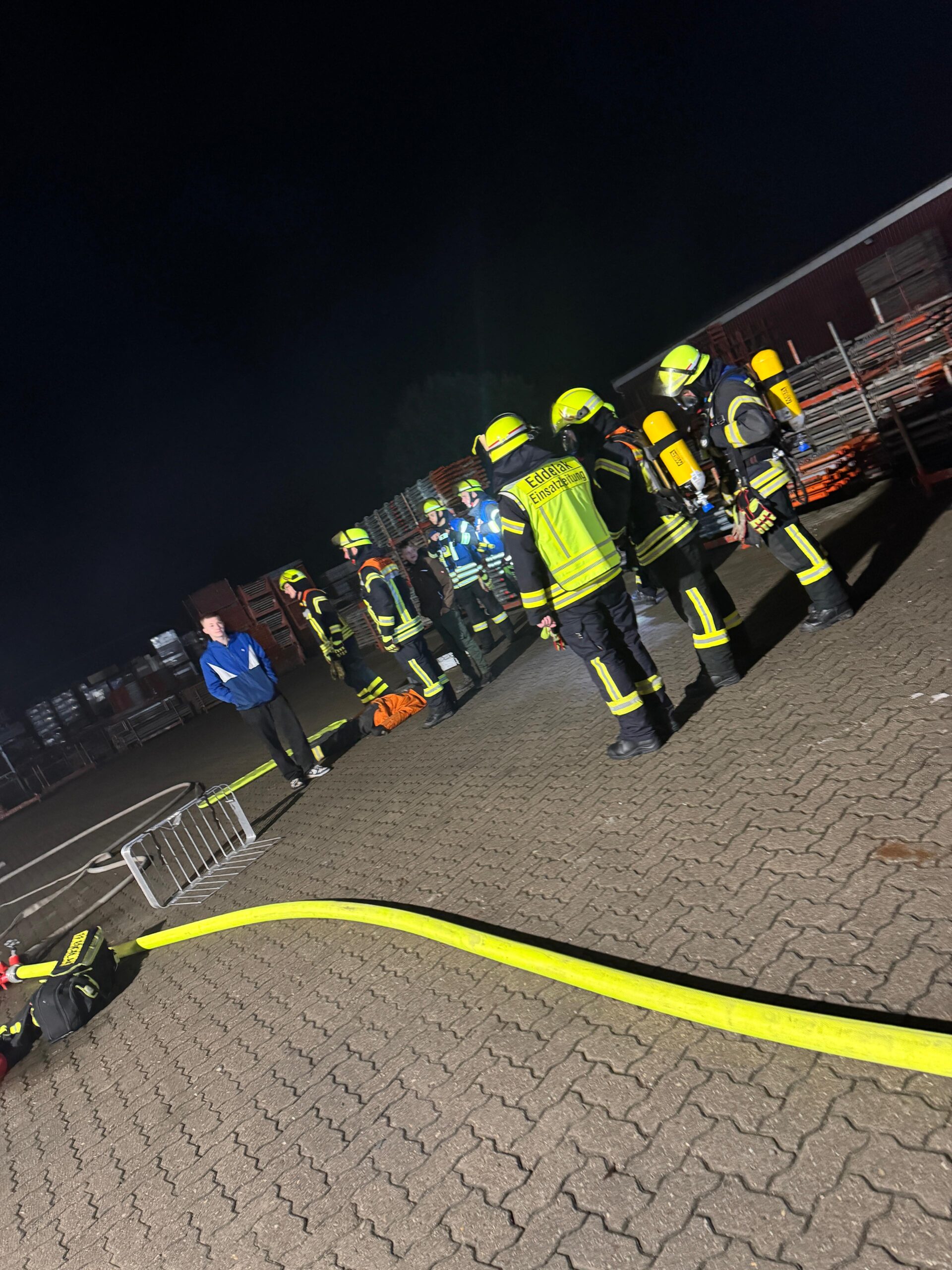 Alarmiert wurde ein Feuer-Standard mit Menschenleben in Gefahr. Vor Ort stellte sich jedoch schnell heraus, dass es sich um die jährliche Alarmübung handelte. Dennoch blieb keine Zeit zum Verschnaufen – sechs Personen galten in einem großen Hallenkomplex als vermisst.