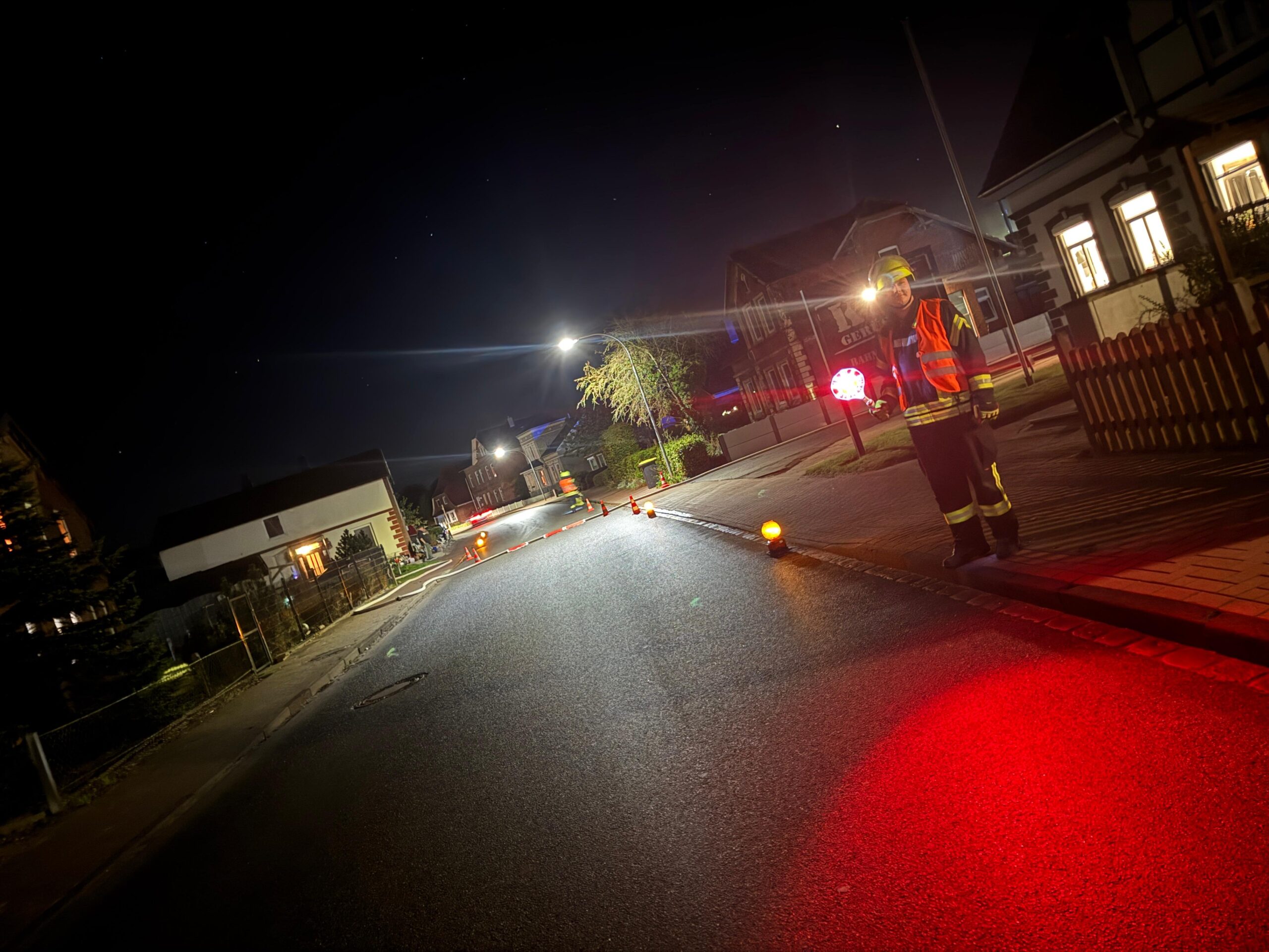 Bereits bei der Erkundung zeigte sich eine starke Rauchentwicklung, die den Einsatz unter Atemschutz erforderlich machte. Die ersten Trupps rüsteten sich zügig aus und begannen mit der Personensuche im Innenangriff. Parallel dazu wurde die Wasserversorgung aufgebaut.