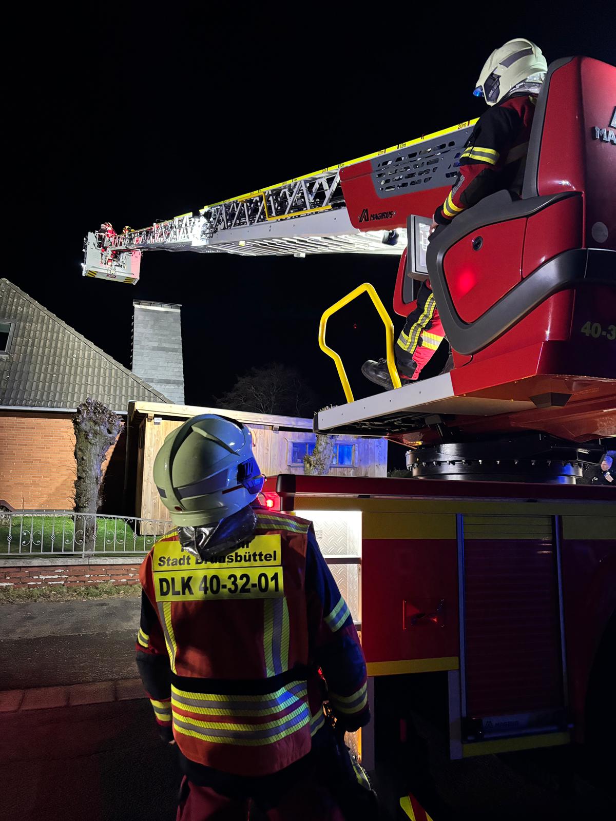 Im weiteren Verlauf des Einsatzes wurde gemeinsam mit der Feuerwehr Averlak die Drehleiter aus Brunsbüttel sowie der zuständige Bezirksschornsteinfegermeister nachgefordert. Nach abschließender Kontrolle des Schornsteins konnte die Einsatzstelle gegen 01:45 Uhr an den Eigentümer übergeben werden.