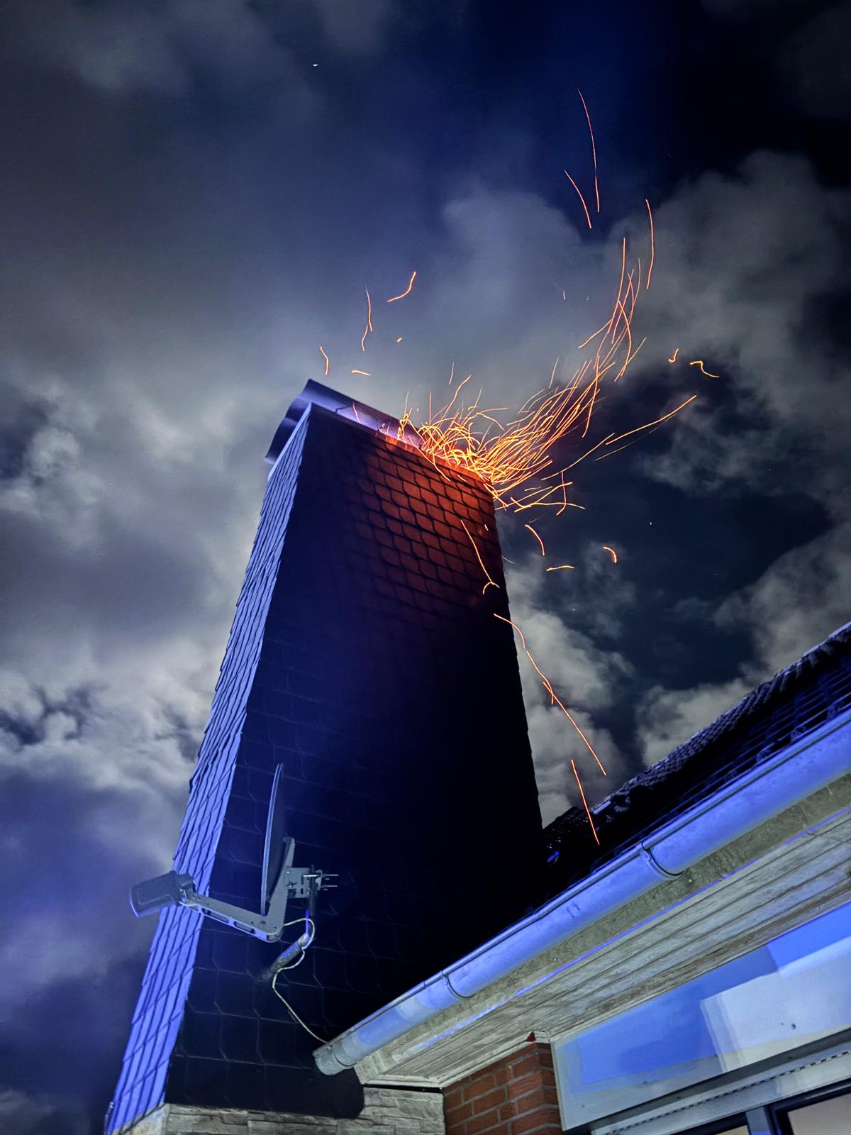 Umgehend wurden die Anwohner aus dem Gebäude geführt. Parallel dazu entnahmen wir das noch brennende Holz aus dem Kamin, sodass eine weitere Befeuerung des Schornsteins unterbunden werden konnte.